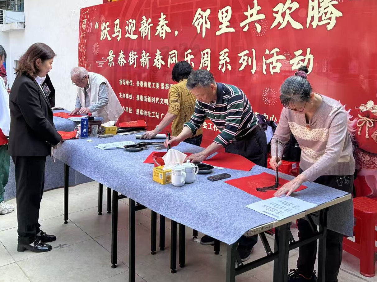 新春将至,年味渐浓;红联映福,墨香传情。为弘扬中华优秀传统文化,营造喜庆祥和的节日氛围配资乐股票配资网址,2月6日上午,白云区政协委员景泰街地方组联合景泰街社工服务站,在景泰街党群服务中心南广场举办“跃马迎新春,邻里共欢腾”景泰街新春同乐周系列活动。活动邀请了白云区老干部局书法家、景泰街地方组政协委员与辖区居民群众齐聚一堂,挥毫泼墨,共绘新春美好图景。